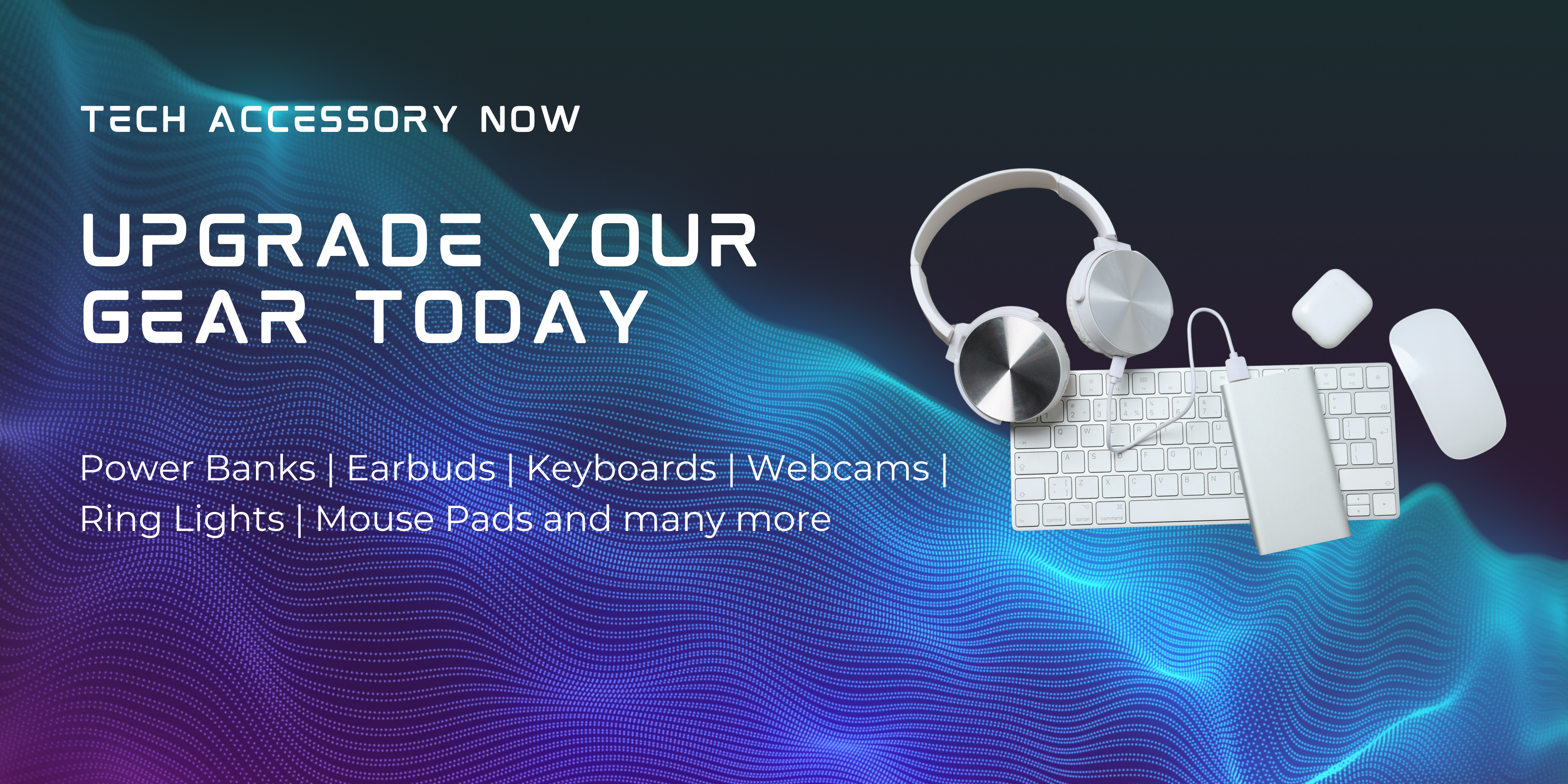 Tech Accessory Now offers Power Banks, Earbuds, Keyboards, Webcams, Ring Lights, Mouse Pads, Laptop Stands, and Portable Speakers.